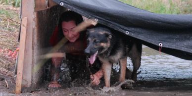 Over a cross country course measuring approximately 1.5 miles, each handler and dog team will travel through water, over fallen trees, face challenges, and conquer obstacles of various kinds.